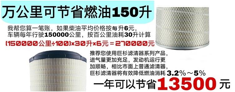根据实际工况合理选择空气滤清器,长途型货车使用高透气量滤芯,是能达到节油效果的。